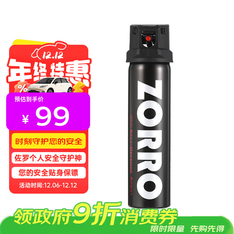 佐罗(ZORRO)骑士黑 防卫器剂防身防狼喷胶 防狼神器房车防身用品