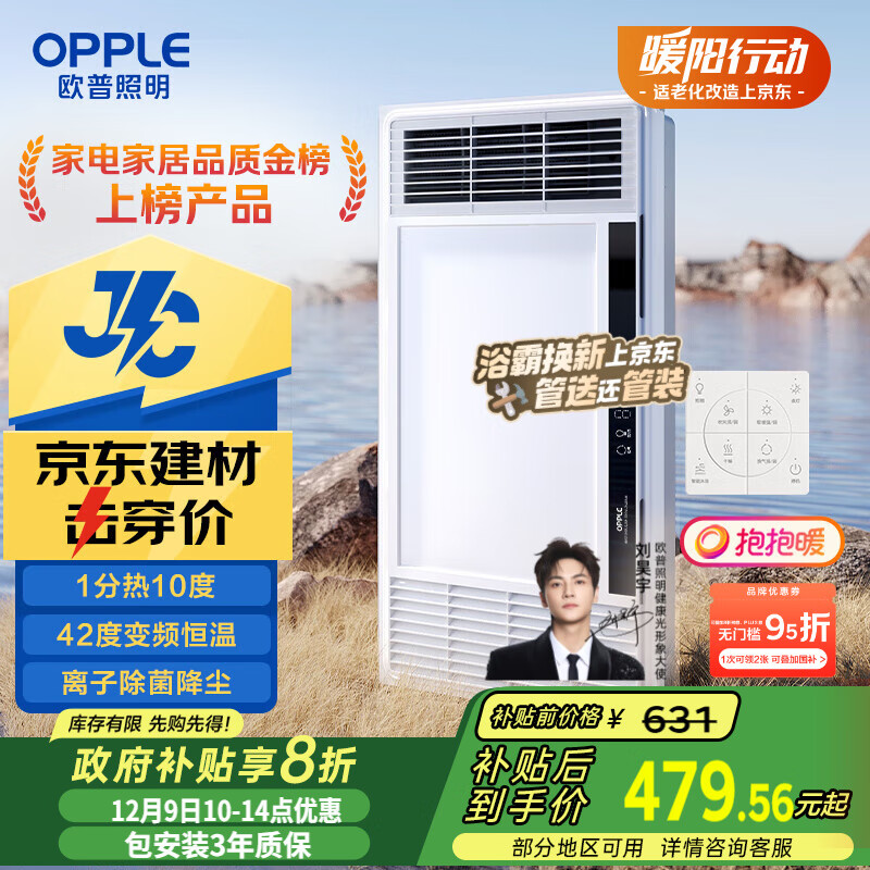 欧普(OPPLE)京东集采JC系列风暖浴霸S3 国家补贴抱抱暖变频恒温除菌浴霸 京耀
