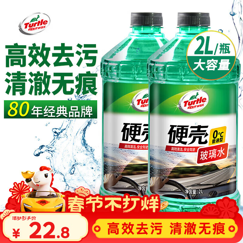 龟牌(Turtle Wax)硬壳玻璃水0度汽车去油膜强力去污除虫胶鸟粪雨刮水通用2L*2瓶