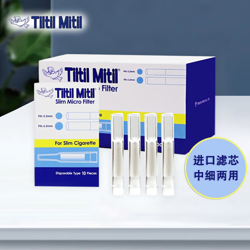Tiltil Mitil日本蓝小鸟烟嘴一次性过滤器抛弃型烟嘴中细两用30盒 300支装