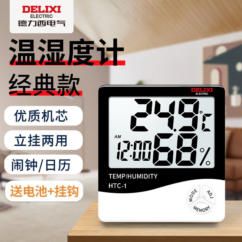 德力西电气(DELIXI ELECTRIC)温度计湿度计室内湿温度计闹钟电子台式大棚温湿度计高精度HTC-1