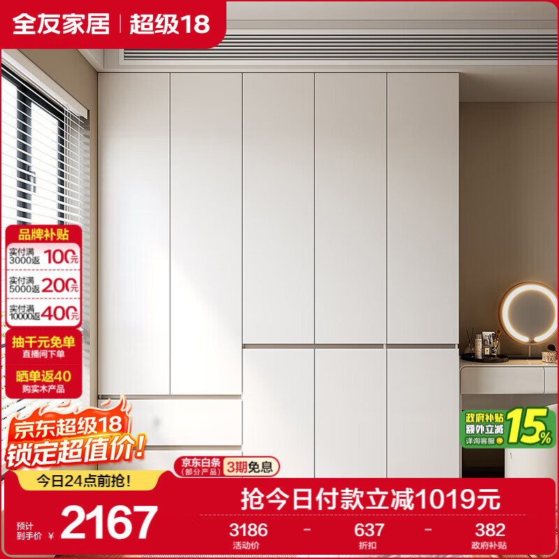 全友家居 大衣柜卧室现代简约家具衣服收纳储物柜子挂衣橱靠墙家用