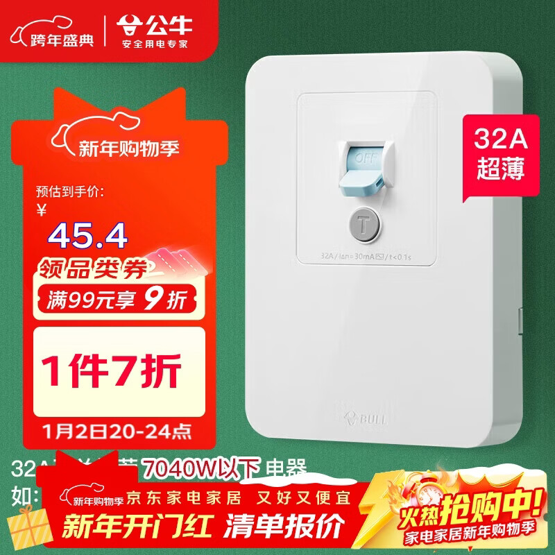 公牛(BULL)漏电保护开关 GTP系列 86型漏电保护开关 32A大功率漏保开关 LE2