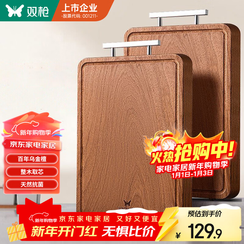 双枪乌金檀木整木菜板 百年龄砧板家用切菜案板抗菌实木菜板45*30*2.5