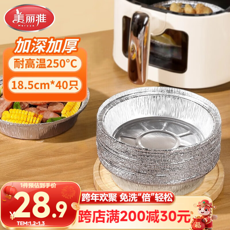 美丽雅空气炸锅锡纸碗18.5cm*40只 烤箱专用铝箔盘食品级烘焙工具