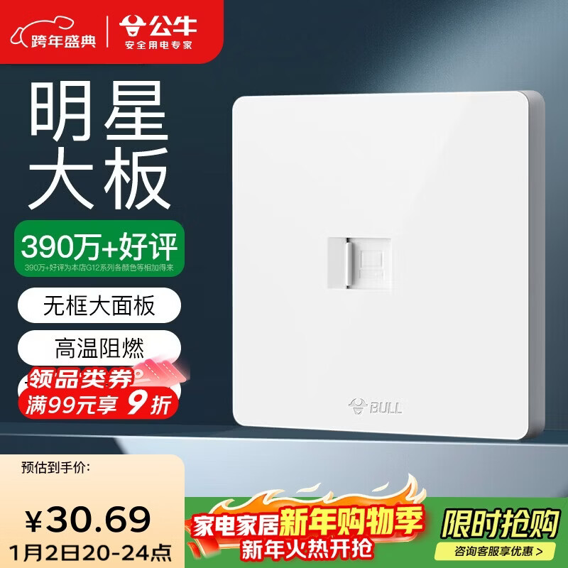 公牛(BULL)开关插座 一位电脑六类插座G12T102B象牙白暗装