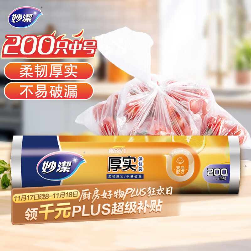 妙洁中号保鲜袋200只 加厚实塑料食品袋子厨房超市