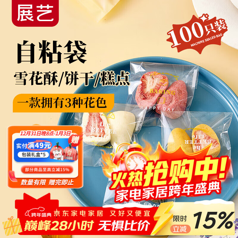 展艺饼干自粘袋100只 曲奇饼干糖果绿豆糕桂花糕 点心包装 生活礼赞
