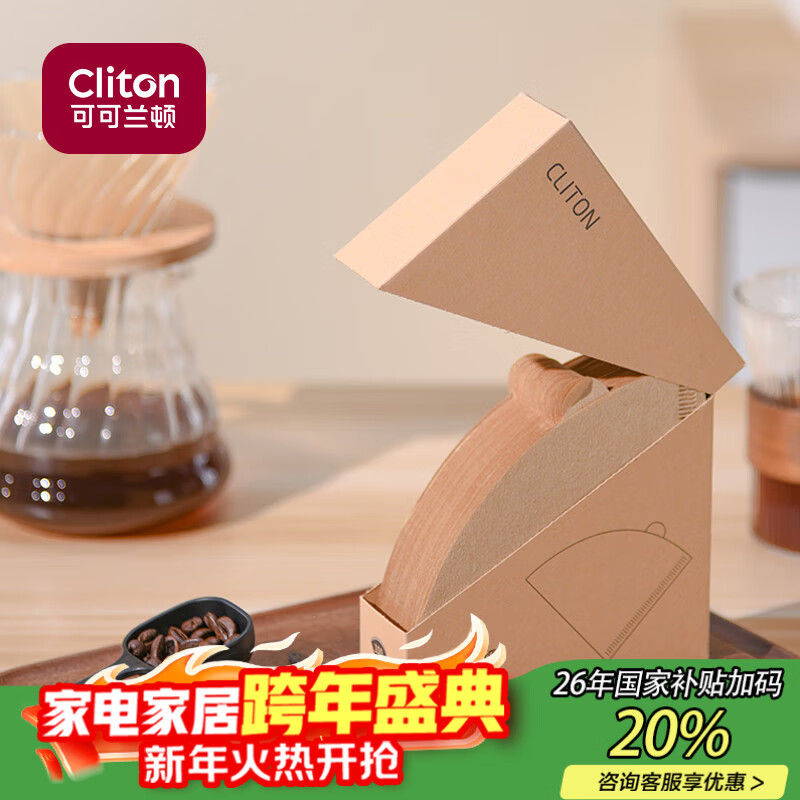 CLITON咖啡滤纸 原木便携滴漏式手冲咖啡粉过滤网 V型滤杯用滤纸100张
