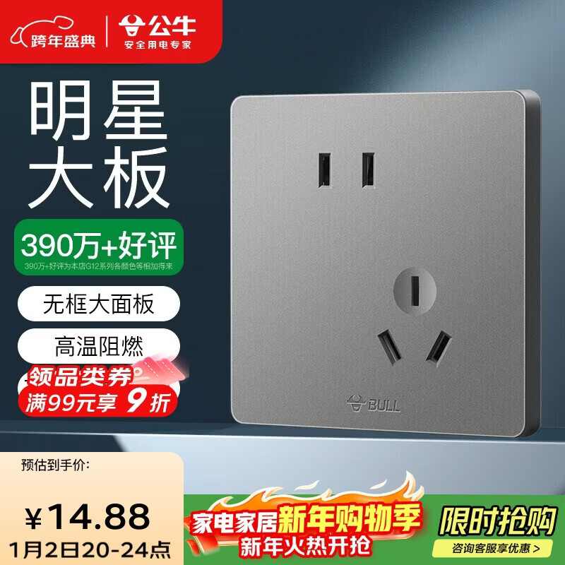公牛(BULL)开关插座 G12系列 10A斜五孔插座86型插座面板 G12Z223AS 星空灰