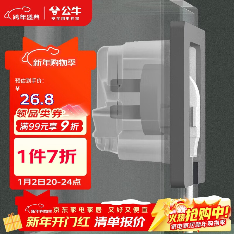 公牛(BULL)开关插座 嵌入式插座可调节空调冰箱隐藏插座GTBZ223灰色五孔10A