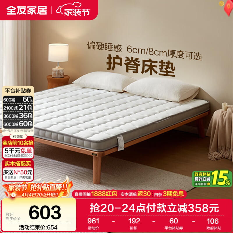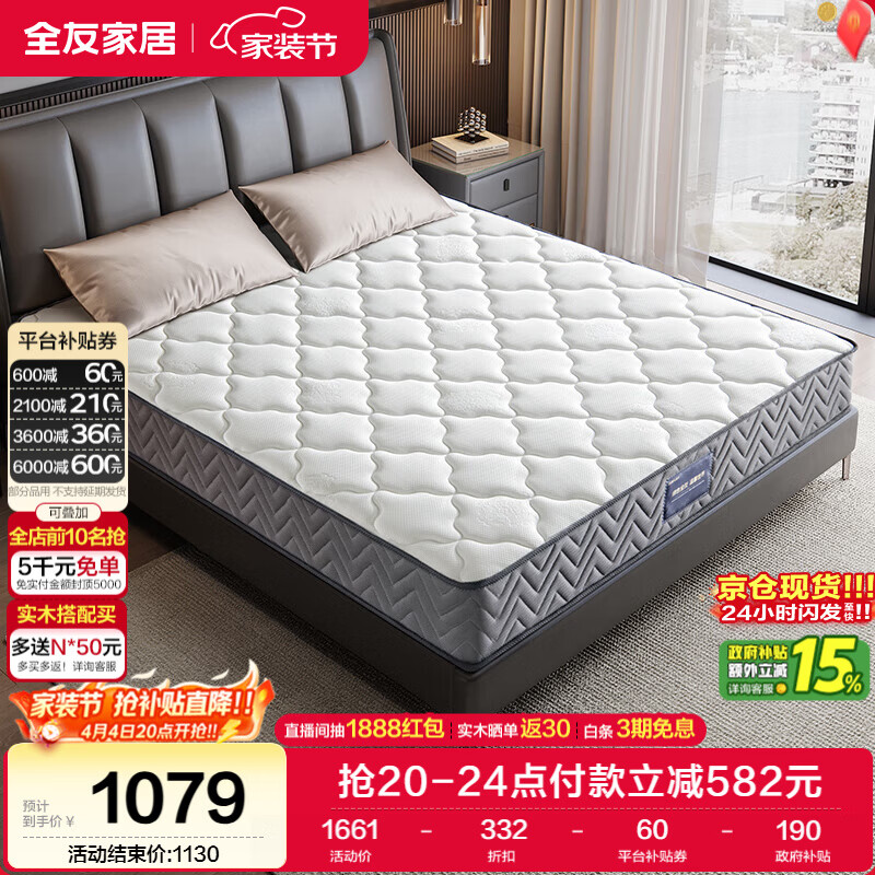 全友家居 进口天然乳胶床垫1.8米x2米独立袋装弹簧环保床垫子软硬适中