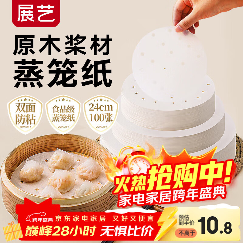 展艺蒸笼纸24cm*100张一次性食品级圆形包子馒头粽子面点蒸屉不沾垫纸