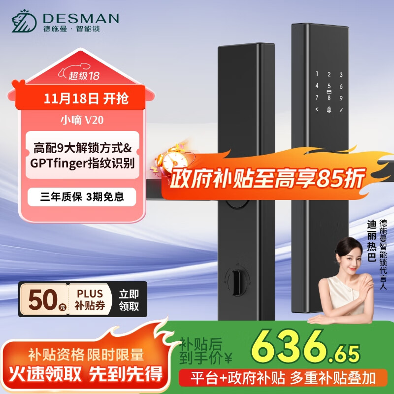 德施曼(DESMAN)智能门锁电子锁家用防盗门锁指纹密码锁小嘀V20