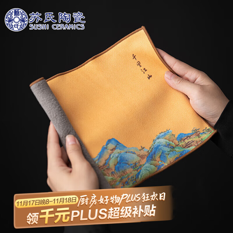 苏氏陶瓷(SUSHI CERAMICS)茶巾千里江山国潮风加倍吸水禅意干泡茶壶垫