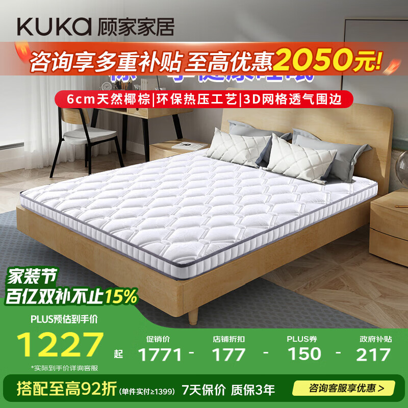 顾家家居顾家床垫椰棕榻榻米床垫棕榈席梦思M0055B 1.8X2米