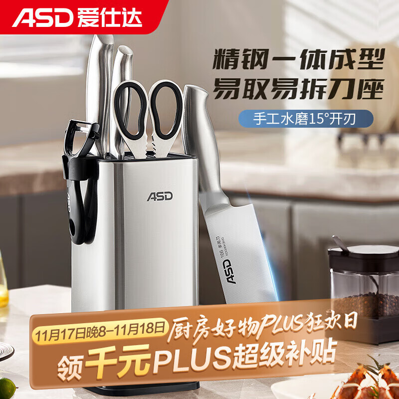 爱仕达(ASD)刀具不锈钢便插系列菜刀套装多用刀水果刀厨房剪刀RDG06K3WG