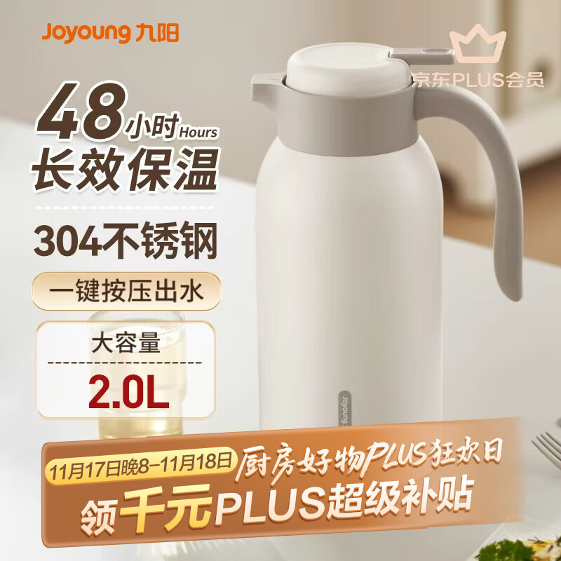 九阳(Joyoung)保温壶家用304不锈钢内胆保温水壶家居暖水瓶大容量2LWF201(白)