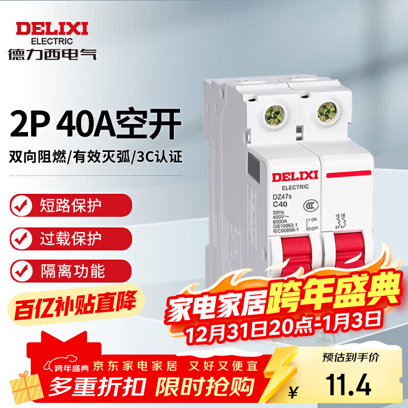 德力西电气微型断路器空气开关家用空开DZ47s C型 2P 40A