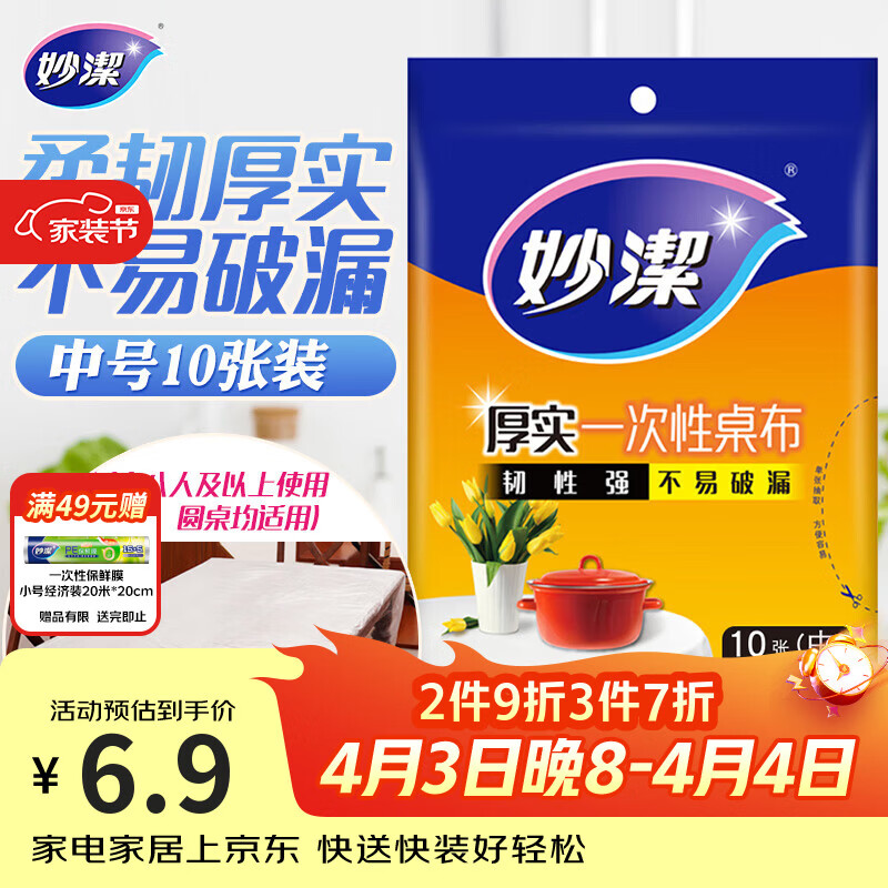妙洁 一次性桌布厚实台布10张装餐桌塑料膜餐垫野餐布中号颜色随机
