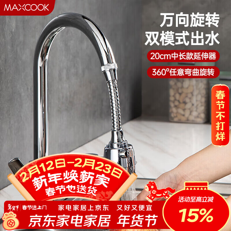 美厨(MAXCOOK)水龙头防溅头 厨房万向旋转过滤延伸器防溅头长款20cm MCPJ3646