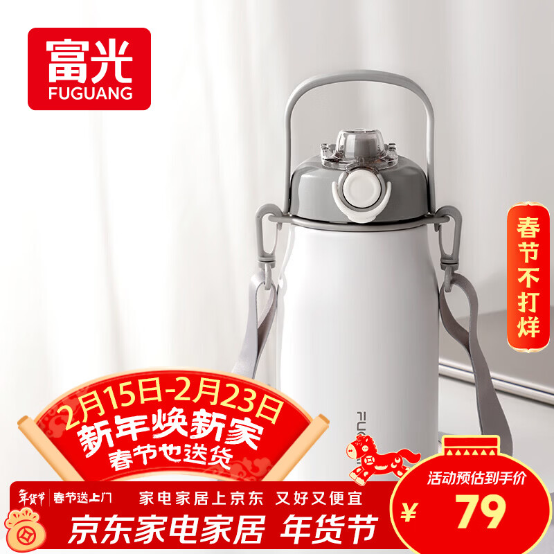 富光保温杯壶316L不锈钢超大容量水杯壶男女吸管杯户外运动杯子1300ml