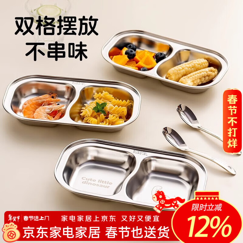 onlycook316L宝宝辅食碟 儿童学生分格餐盘饭碗 婴幼儿不锈钢餐具-汽车