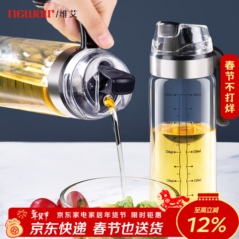 维艾(Newair)玻璃油壶自动开合防漏厨房家用装油瓶子油罐小香油酱油醋壶调料瓶