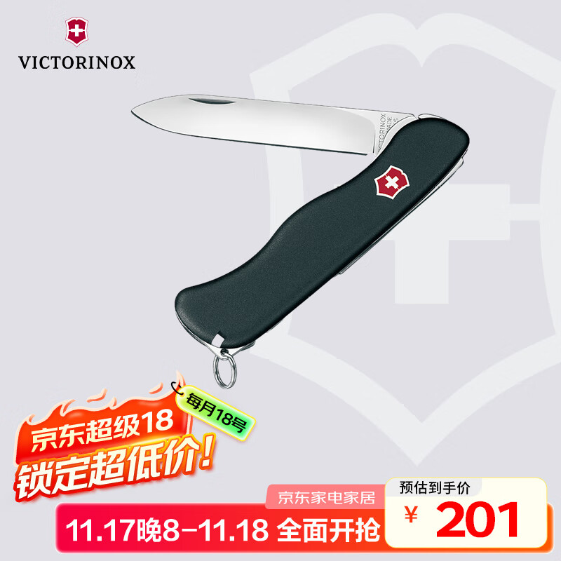 维氏瑞士军刀哨兵平刃水果刀刀折叠刀黑色0.8413.3