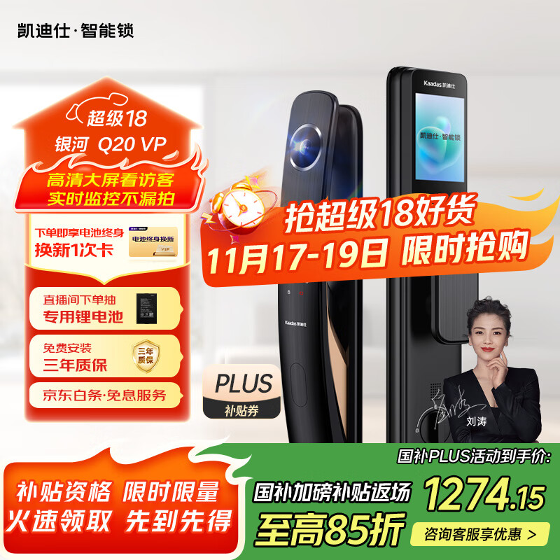 凯迪仕(kaadas)智能锁 指纹锁电子锁 哨兵猫眼大屏全自动智能门锁 银河Q20 VP