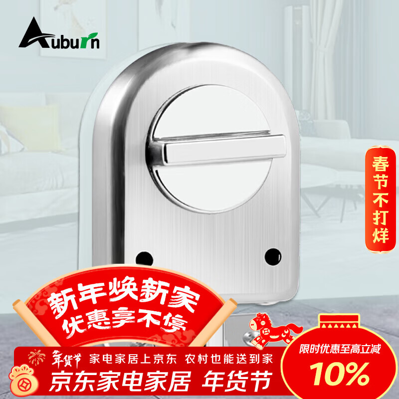 奥本插销 免打孔玻璃门插销锁 酒店浴室单门地锁卫生间地插销822银色