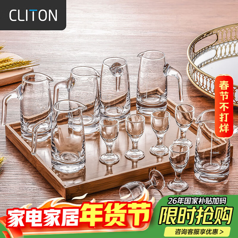 CLITON白酒杯分酒器100ml酒具套装茅台一口小酒杯刻度分酒壶酒盅6壶6杯