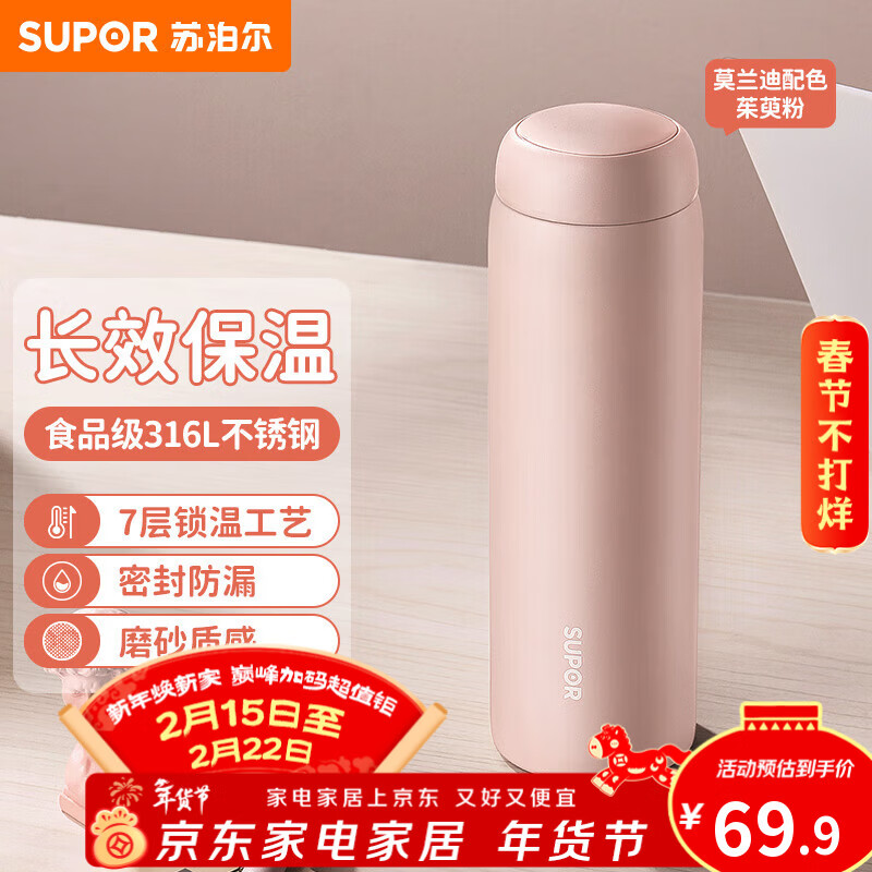 苏泊尔(SUPOR)保温杯316L不锈钢学生水杯女户外便携泡茶杯车载杯子生日礼物粉