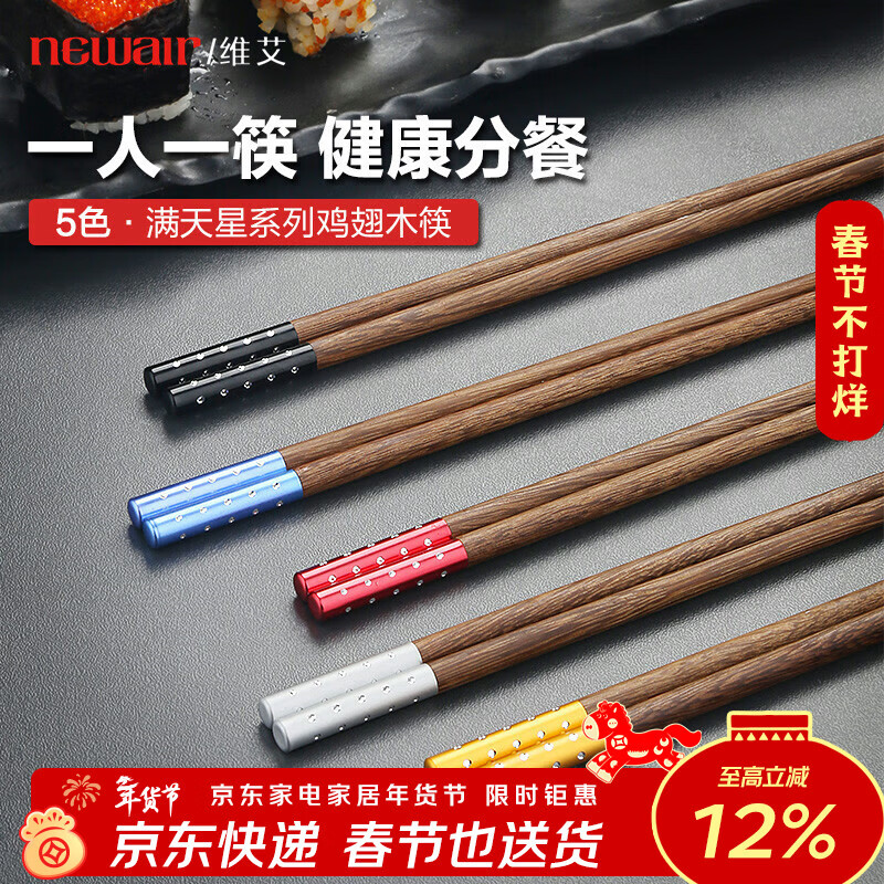 维艾(Newair) 鸡翅木筷子套装一人一筷无漆无蜡日式和风餐具家用分食5双装