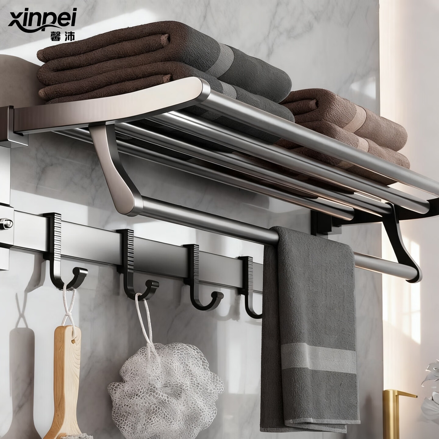 馨沛浴室毛巾架免钉打孔收纳挂架卫生洗手间厕所墙上置物架冲凉房挂件