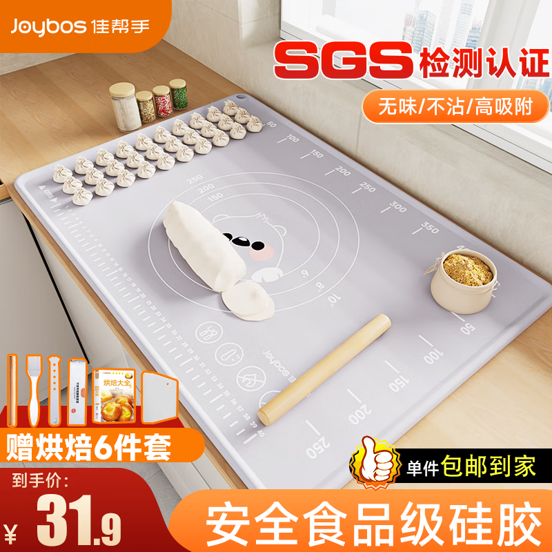 佳帮手硅胶揉面垫食品级擀面垫母婴级和面垫厨房防滑案板60*40cm加厚6件