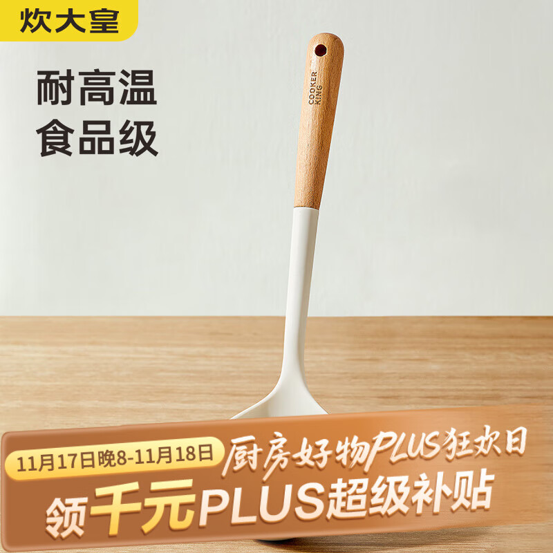 炊大皇 硅胶汤勺 木柄汤勺不粘汤锅火锅汤勺耐高温 白色