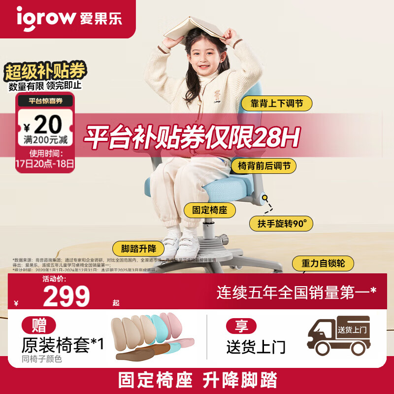 爱果乐(IGROW)儿童学习椅学生椅儿童座椅儿童椅写字椅【固定气杆 升降脚踏】