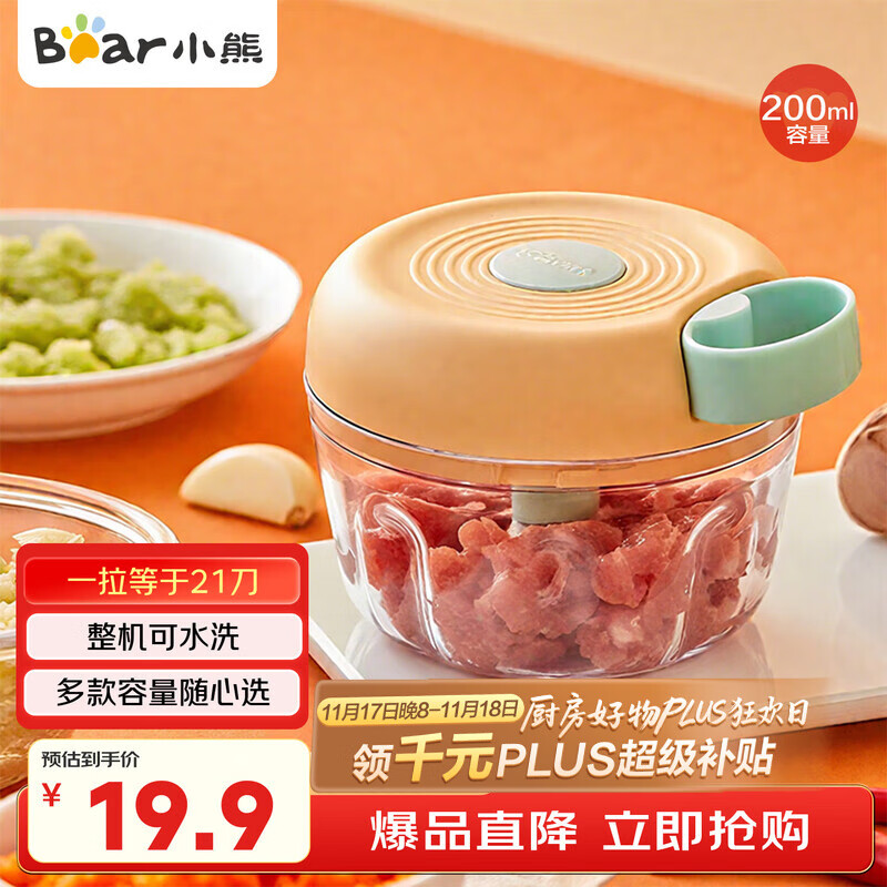 小熊(Bear)捣蒜器 打压蒜泥捣碎神器 家用拉蒜器绞肉馅搅碎机器 CX-D0010