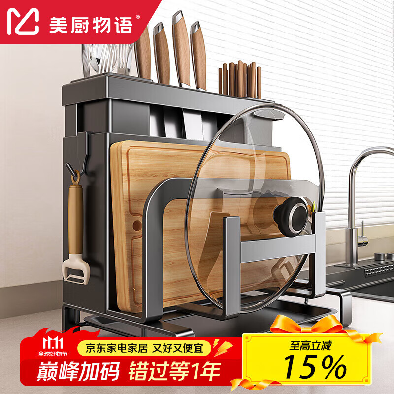 美厨物语厨房置物架刀架放菜刀板锅盖一体砧板筷子笼刀具用具收纳架