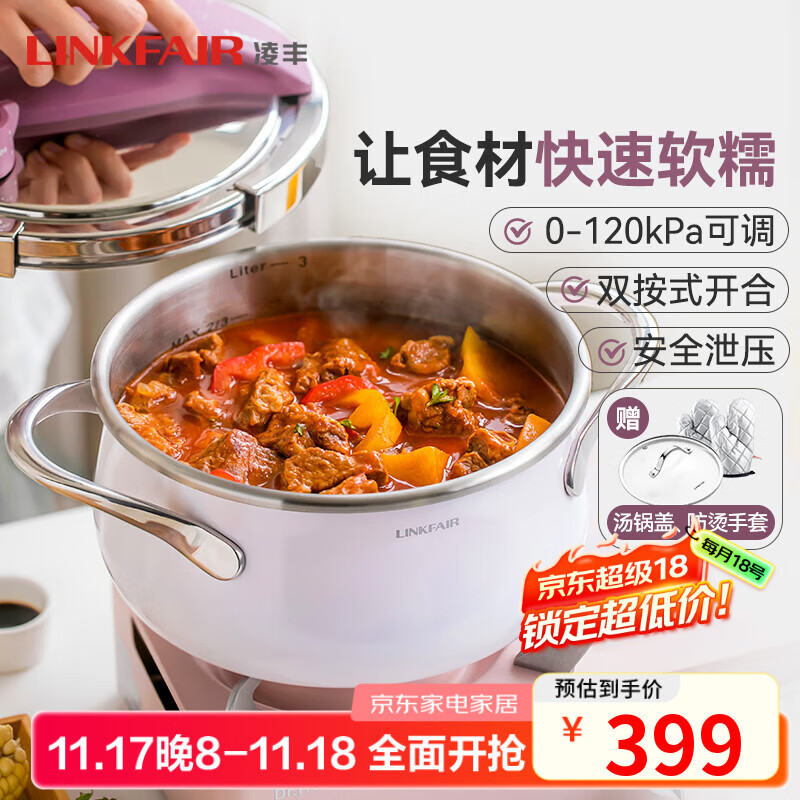 凌丰(LINKFAIR)家用高压锅防爆压力锅小型多功能迷你不锈钢单手开合燃气电磁炉用
