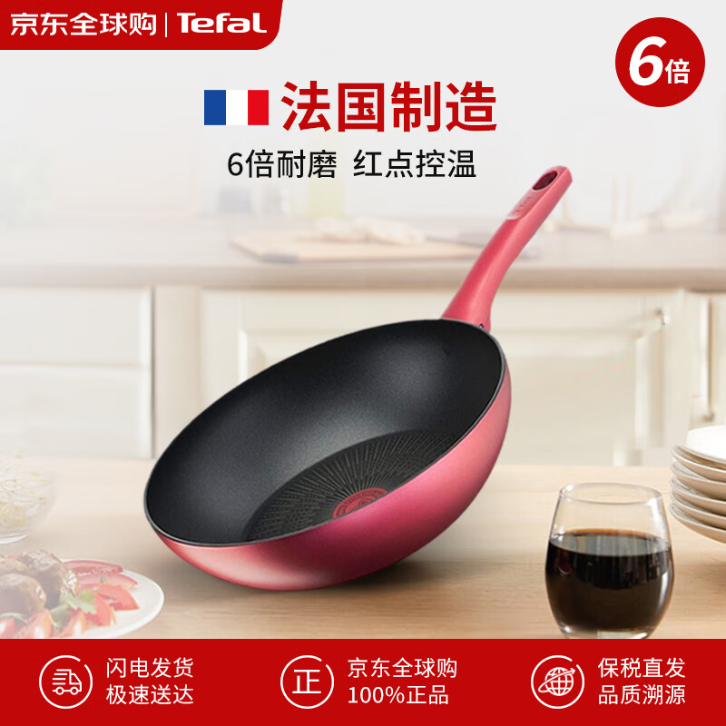 Tefal特福法国制造不粘锅炒锅 红钻系列炒菜锅28cm电磁炉燃气灶G26219