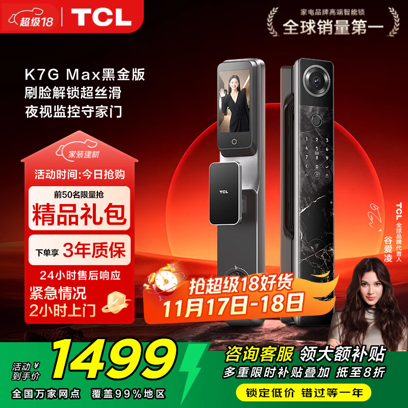 TCL3D人脸识别猫眼锁指纹锁智能锁智能门锁电子锁K7GMax(黑金版)