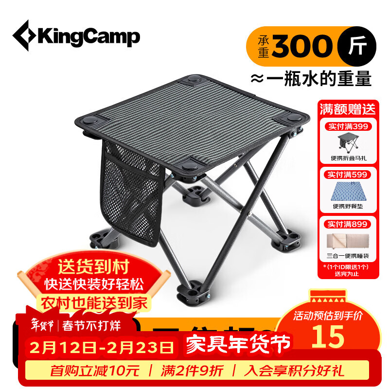 康尔(KingCamp)折叠椅小马扎钓鱼椅旅行折叠凳火车排队神器便携椅户外装备露营椅