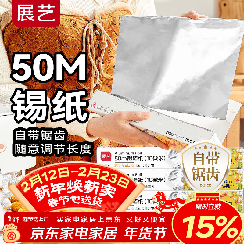 展艺铝箔锡纸50m 空气炸锅烤箱烤盘加厚加热防油新年烘焙纸垫纸锡纸