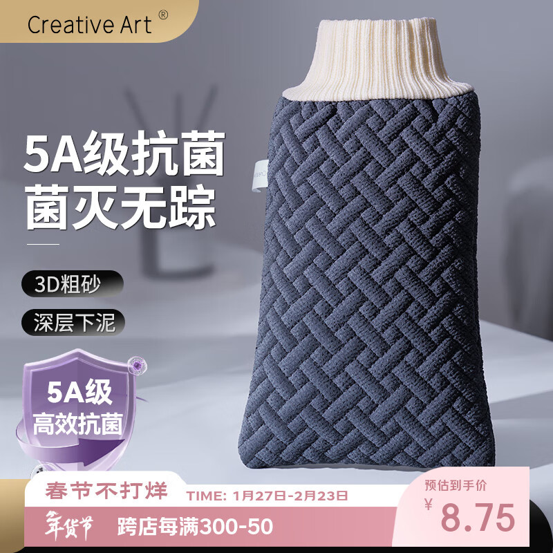 Creative art搓澡巾男士专用洗澡神器 手套搓拉后背拉粗细砂加大厚双面5A抗菌