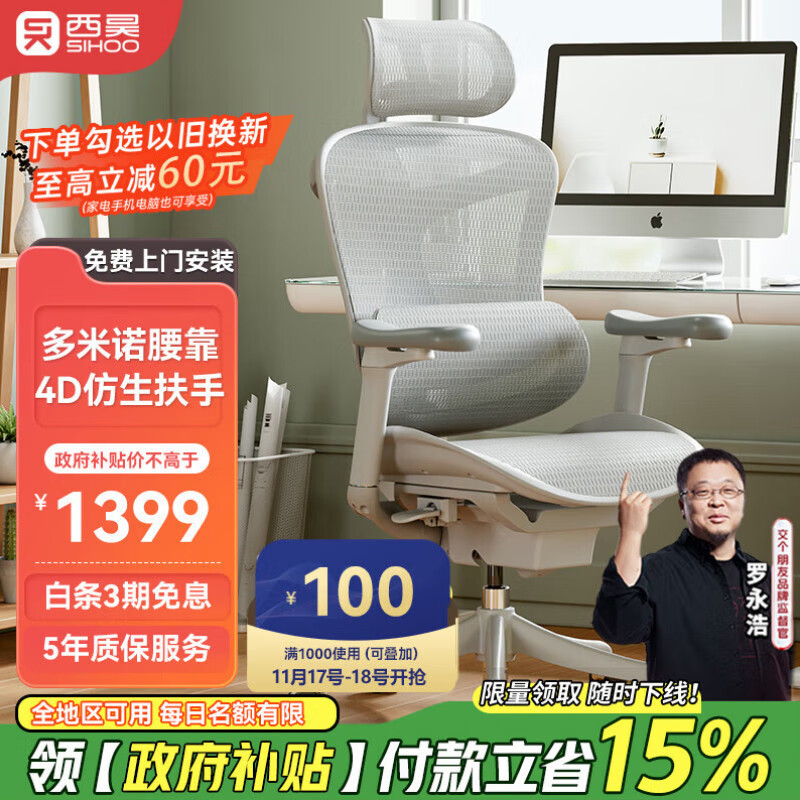西昊C100一代 人体工学椅电脑椅办公椅子久坐人工力学座椅电竞学习椅