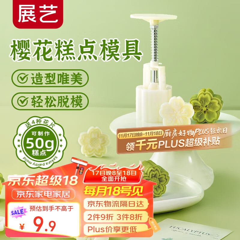 展艺新款樱花模具立体4花片50g冰皮压花辅食烘焙模具绿豆糕甜品中秋