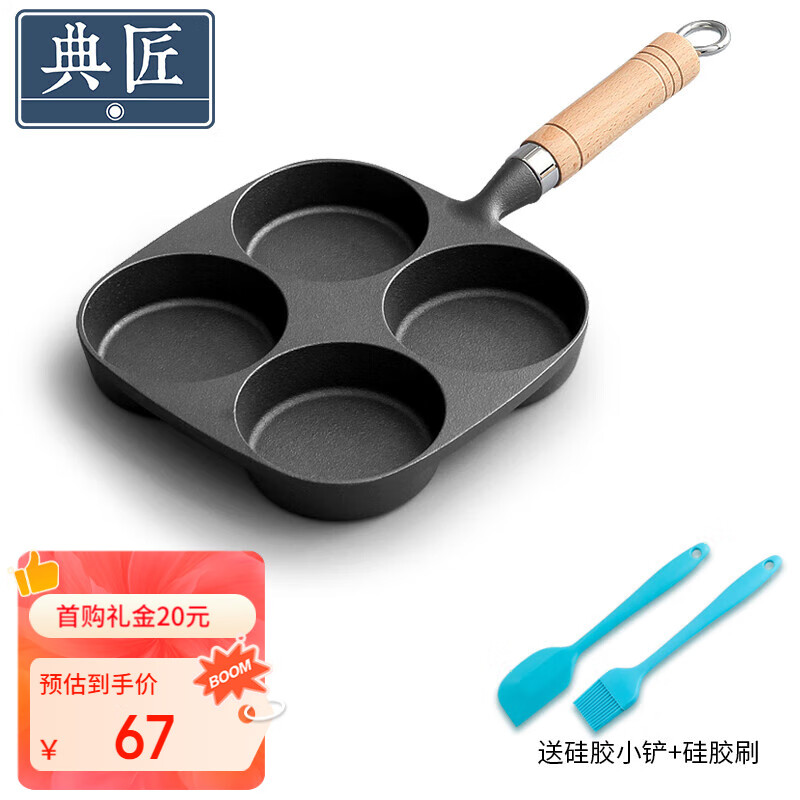 典匠四孔铸铁煎蛋锅无涂层不易粘多功能早餐模具汉堡蛋饺锅平底煎锅