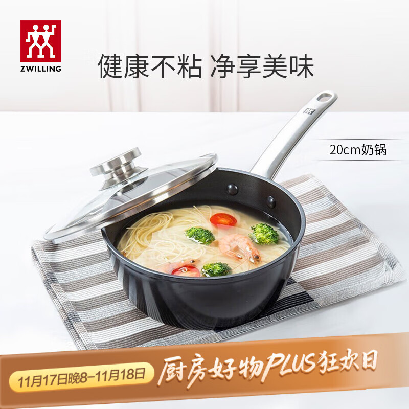 双立人(ZWILLING)奶锅辅食锅电磁炉通用不粘锅泡面锅大容量平底锅一人食Enjoy20cm